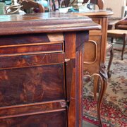 The condition of the top and draw fronts is very good , however there is a little veneer missing just under the front top edge please see last image.