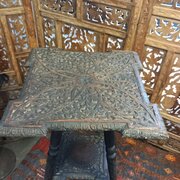 A profusely carved Padouk wood Indian two tier side table.The table is in very good original condition no damage or repairs. A good statement table with lots of uses.