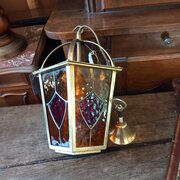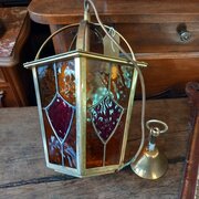 A lovely leaded light and brass hall / porch lantern. It is in very good condition , there is no damage to the glass and is pat tested.