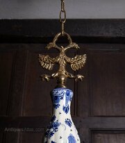 An excellent quality 8 light blue Delftware chandelier. A good large chandelier with lovely blue and white pottery. A very impressive chandelier. This chandelier will be fully rewired fitted with new bulb holders, new candle drips or candle tubes and pat tested.